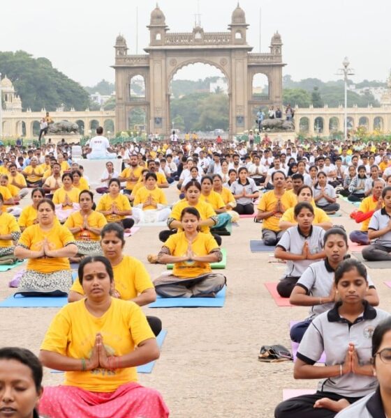 11ನೇ ಅಂತಾರಾಷ್ಟ್ರೀಯ ಯೋಗ ದಿನಾಚರಣೆ ಅಂಗವಾಗಿ ಅರಮನೆ ಆವರಣದಲ್ಲಿ ಯೋಗ ಪ್ರದರ್ಶನ.