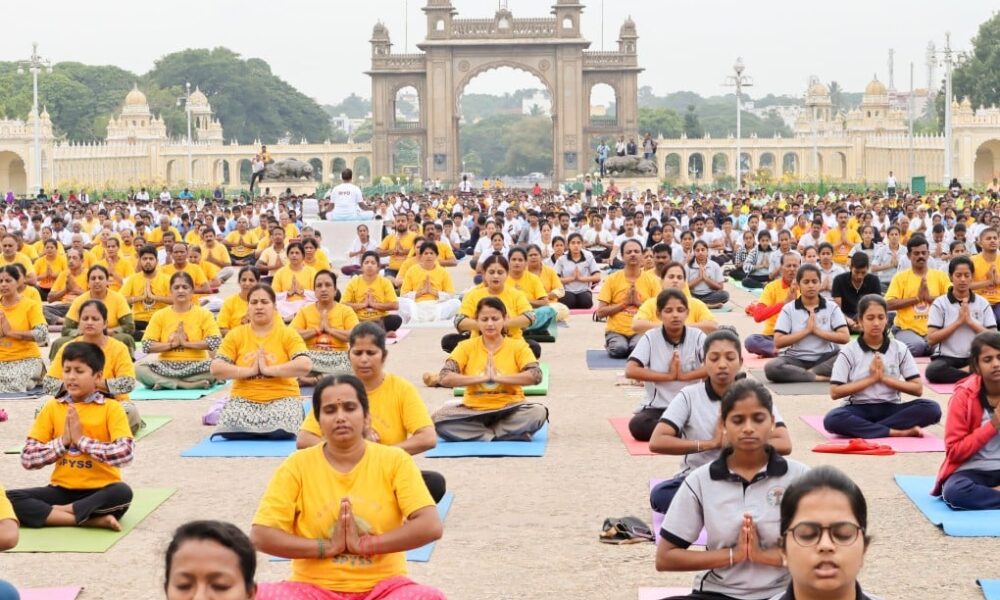 ಮೈಸೂರು: 11 ನೇ ಅಂತರಾಷ್ಟ್ರೀಯ ಯೋಗದಿನಾಚರಣೆ ಅಂಗವಾಗಿ ಇಂದು ಮೈಸೂರು ಅರಮನೆಯಲ್ಲಿ ಯೋಗಪ್ರದರ್ಶನ ಹಮ್ಮಿಕೊಳ್ಳಲಾಗಿತ್ತು. ವಿಶ್ವ ಯೋಗ ದಿನಾಚರಣೆ ಕಾರ್ಯಕ್ರಮವನ್ನ ಗಣ್ಯರು ಜ್ಯೋತಿ ಬೆಳಗುವ ಮೂಲಕ ಚಾಲನೆ ನೀಡಿದರು. ಈ ಬಾರಿ ಒಂದು ಭೂಮಿ ಒಂದು...